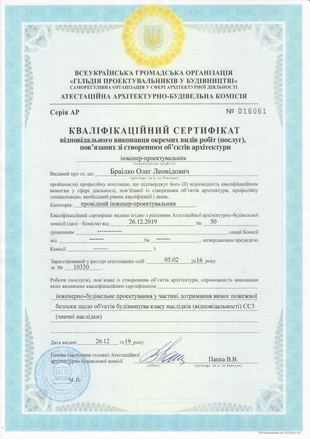 Олег Браілкопровідний інженер-проектувальник компанії Антіфаєр. Має кваліфікаційний сертифікат відповідального виконавця робіт, пов’язаних зі створенням об’єктів архітектури (серія АР №016061). Пройшов підвищення кваліфікації за напрямом інженерно-будівельного проєктування у частині пожежної безпеки. Має практичний досвід у сфері пожежної безпеки та бере участь у підготовці й перевірці матеріалів. |
